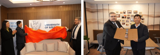 在与会嘉宾的共同见证下,陕西师范大学党委常委、物理学与信息技术学院院长李贵安教授与塞格德大学校方代表、博士生导师 Dr. Nagy Gábor Dániel共同为塞格德大学驻陕西师范大学办公室揭牌,标志着该办公室正式启用,双方合作迈入机制化、常态化发展的新阶段。随后,双方代表签署了合作项目框架协议,进一步明确了在人才培养、课程建设及科研合作等方面的合作内容与实施路径,为推动两校中外合作办学项目高质量发展和深化校际合作提供了制度保障。