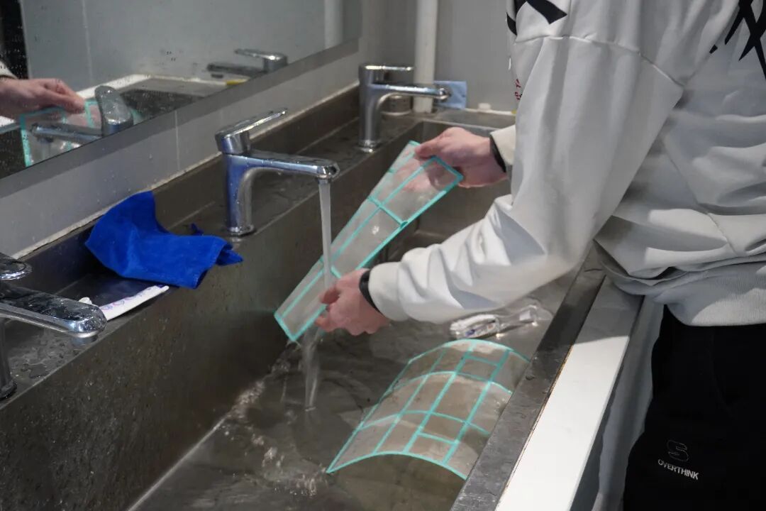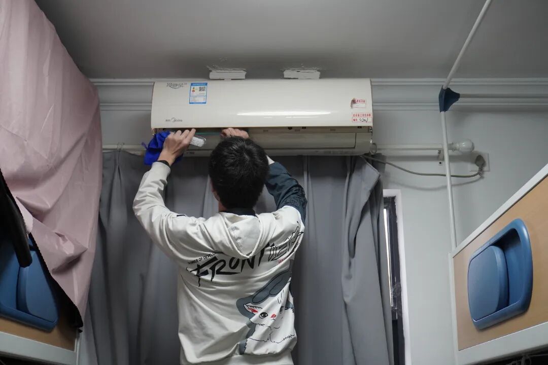3月7日、8日下午,宿舍空调清洁志愿活动温暖开启。志愿者们携带清洗工具,满怀热忱地走进同学们的宿舍,从外壳拆解到滤网除尘,从机身擦拭到部件消毒,每一步操作严谨规范,让沉寂一冬的空调焕然一新,为学子送去清新暖风。