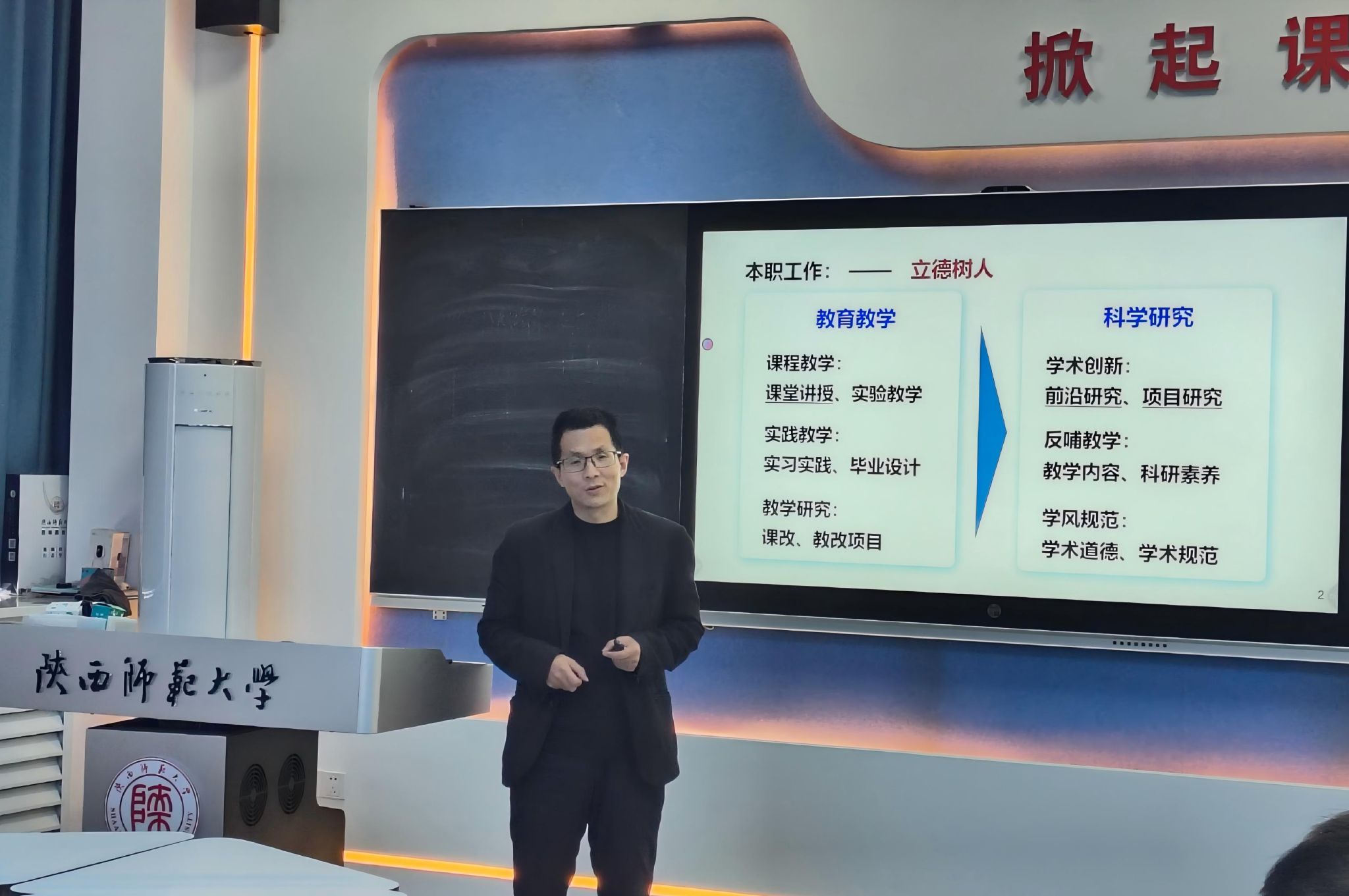 主讲人张正龙教授结合自身经验,从教育教学与科学研究两方面分享,他现场展示课程设计案例,着重强调思政元素融入课堂的方法与重要性,同时还针对科研项目开展、基金申报等,为青年教师提供了实用指导。主讲人黄育红教授聚焦高校教师育人职责,强调要关心关爱学生,在教学过程中要根据学生反馈调整教学策略、提升课堂质量,并详细介绍了指导学生竞赛的有效方法,为青年教师提供了可借鉴的实践经验。