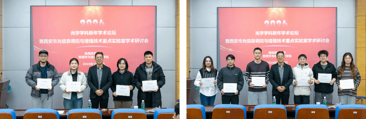 2026年1月15日,我院在六层报告厅举办“光学学科新年学术论坛暨西安市光信息调控与增强技术重点实验室学术研讨会”。光学学科全体教师及80余位研究生参加会议,并贡献了17场精彩学术报告。