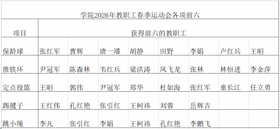 院工会的老师精心为老师们准备了多样活动:滚铁环,踢毽子,跳小绳,投篮,垒球掷准,夹乒乓球等趣味活动。教师们奋进的身影活跃在赛场的每个角落,快乐运动第一,比赛第二,尽情享受着健康运动带来的欢乐。各项运动的获胜老师名单如下: